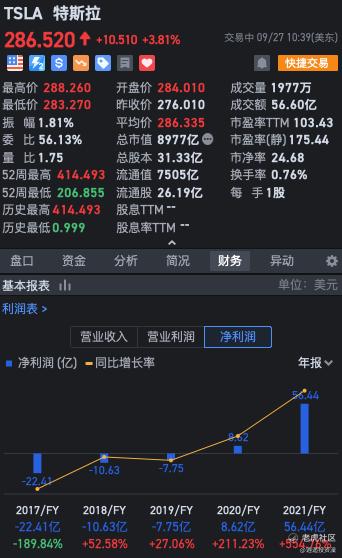 $特斯拉(TSLA)$ 是2010年以17美元上市的美国公司,目前价格287,期间进行过一次1拆5,一次1拆3,年化回报率为59%,地球果然容不下他了。