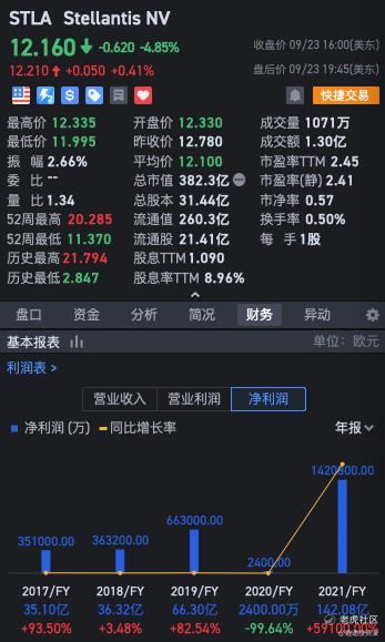 $Stellantis NV(STLA)$ 是2021年在美国上市的英国公司,上市以来股价从15.6下滑至目前的12.2 。