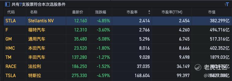 小牛电动(NIU) 市值过低,并且不属于汽车板块,暂时略过。