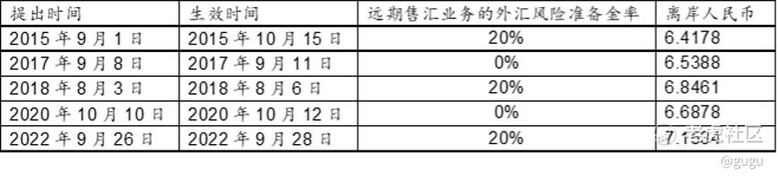 下表是历史上“远期售汇业务外汇风险准备金率”的调整。