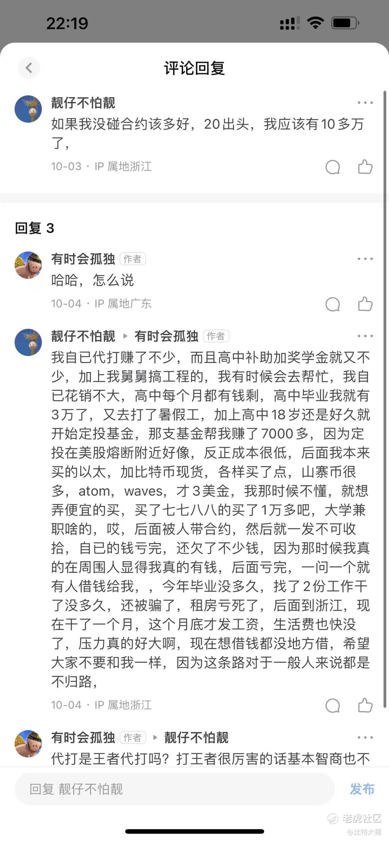 我舅并不是蠢人,从他初期玩合约的战绩就能看出他甚至比很多人聪明,但最后他依然输掉了本金。我舅的故事也仅仅是众多合约玩家里的一个,有的合约玩家甚至各种贷款再加杠杆,最终把妻子女儿都一同逼上绝路。下图的小哥就是另一个玩合约失败的故事。