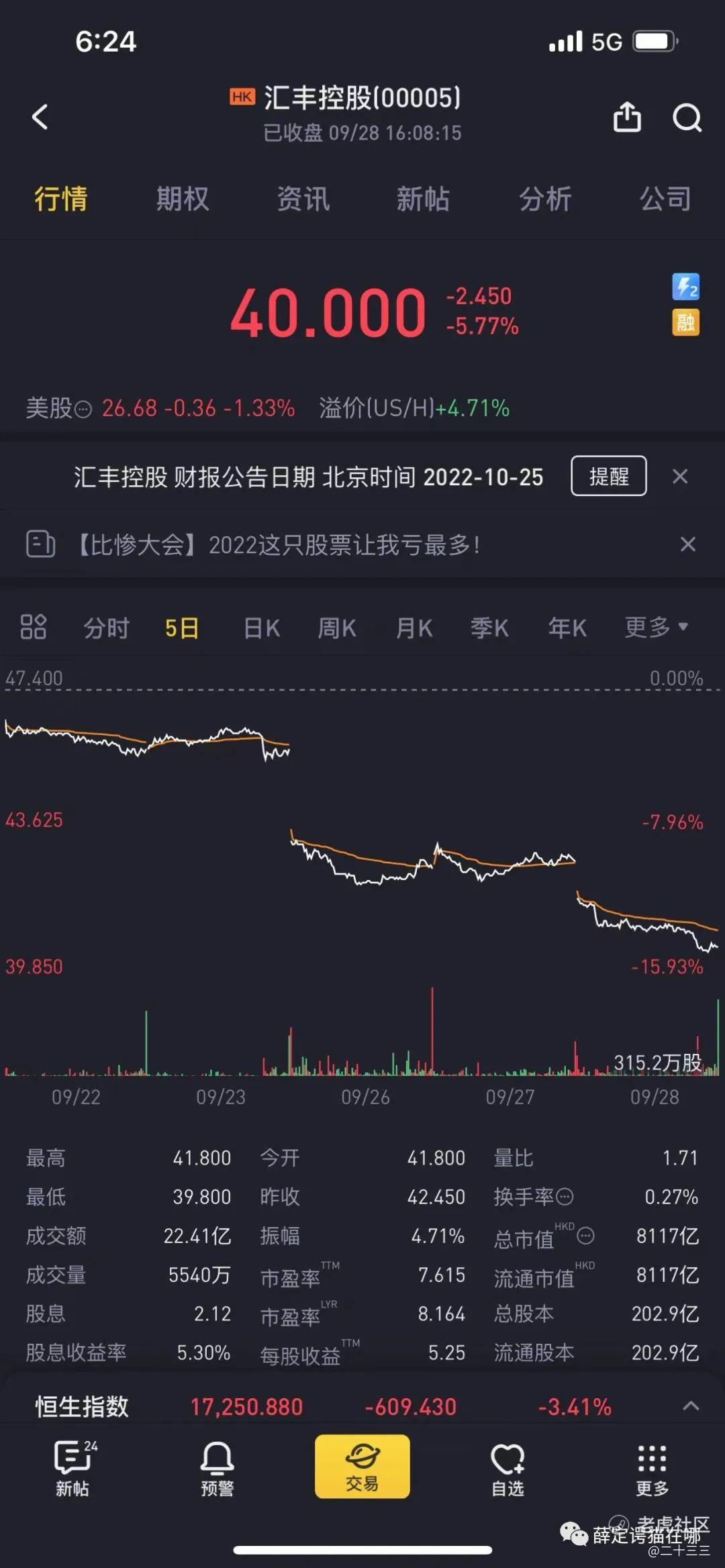今天平安跌了4个点真是没有想到,港股杀疯了一般,啥股票都往下跌。
