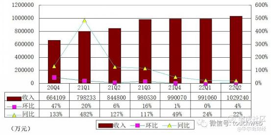 再看理想和小鹏。2022 年第二季度,理想汽车实现营收 87.3 亿元,环比下降 8.7%;小鹏汽车实现营业总收入74.36亿元。