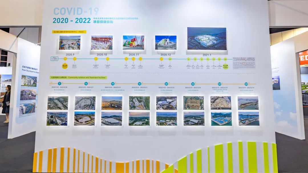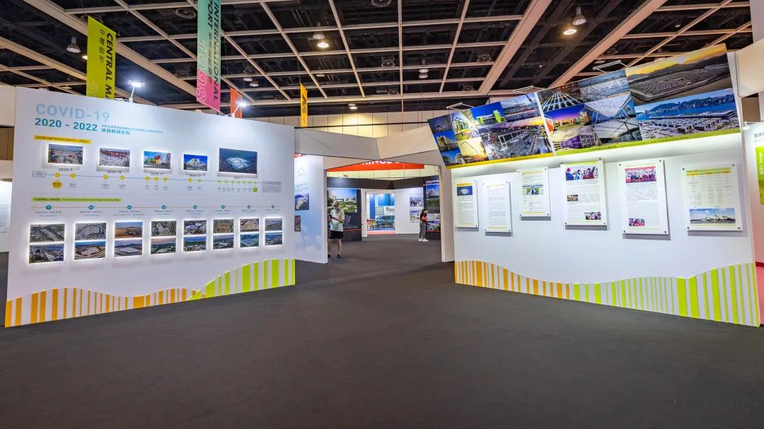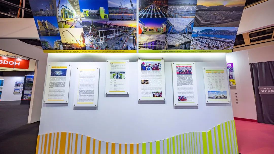 展区特别设置了“香港感染控制中心及社区隔离设施”专区,全方位展示了自2020年新冠肺炎疫情暴发以来,公司四次助港抗疫,承接多处中央援港社区隔离设施的建设过程。