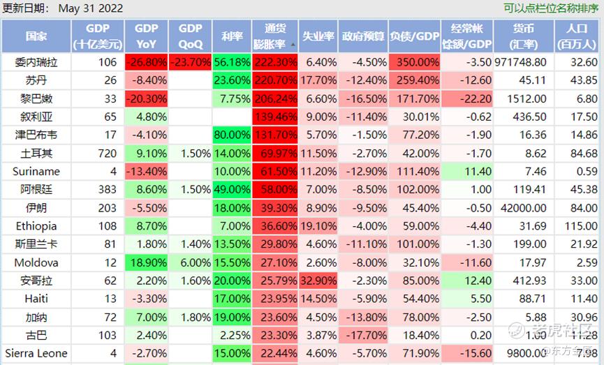还有更夸张的,全球通货膨胀率在20%以上的就有17个国家。