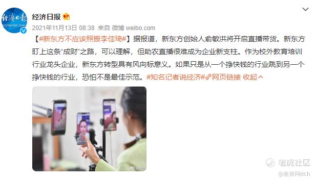 “作为校外教育培训行业的龙头企业之一,新东方转型具有风向标意义。如果只是从一个挣快钱的行业跳到另一个挣快钱的行业,恐怕不是最佳示范。”