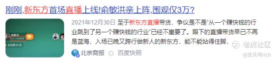 “新东方首场直播上线!俞敏洪亲上阵,围观仅3万?”