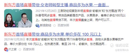 最近新东方的双语带货火了,这是七个月前所有人都想不到的。你在百度搜索新东方直播,把时间限定在2021年11月至2022年1月新东方刚转型那会。看到的新闻会是: