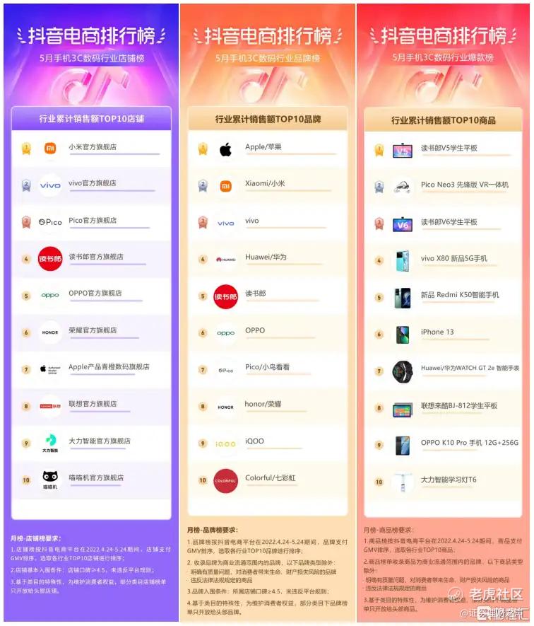 从抖音近期发布的电商5月手机3C数码行业的排行榜中可以看见,读书郎上榜多份榜单,电商矩阵营销成效不菲。在3C数码赛道中,教育智能硬件领域的读书郎独树一帜,位列排行榜第5,前4分别是苹果、小米、vivo、华为等行业巨头。在行业累计销售额TOP 10的商品中,读书郎V5学生平板位于榜首,读书郎V6学生平板位列第三,销售额力压iphone 13、华为智能手表等,可见读书郎产品的畅销程度。