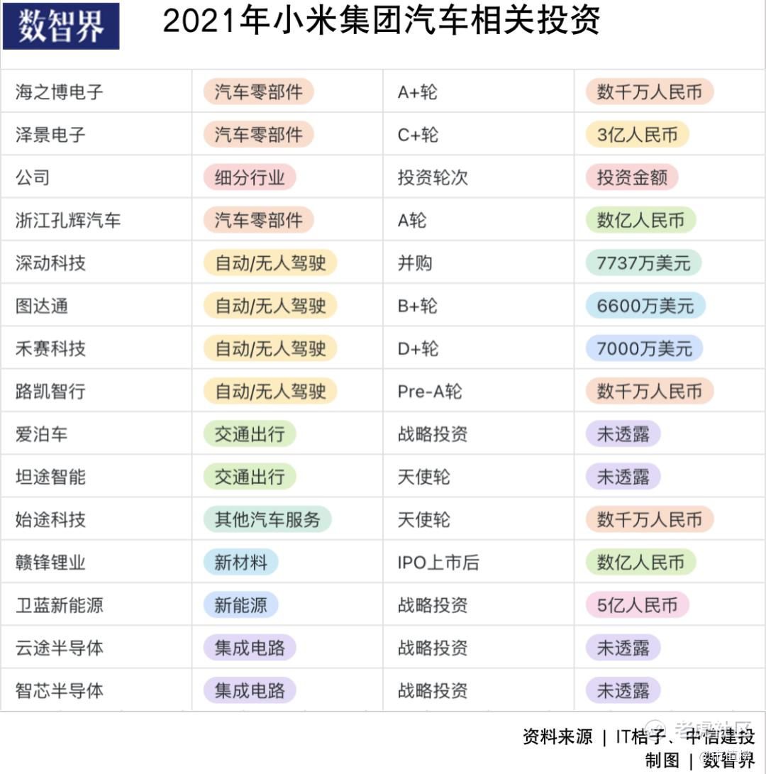 小米的新能源汽车布局中,还有一项不能忽略:对外投资。