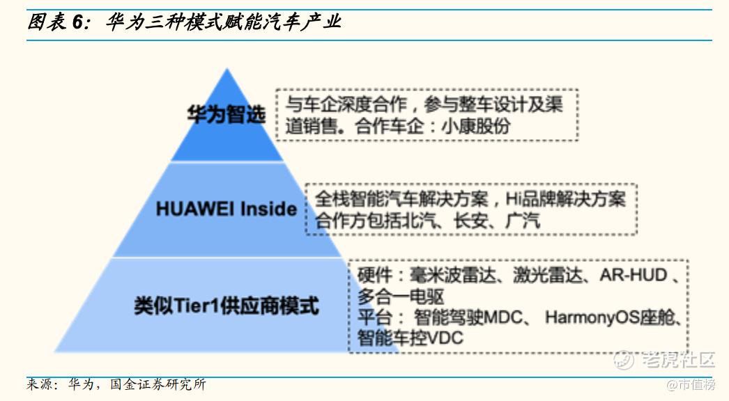 第一,Huawei Inside(HI)模式,华为与车企深度合作,提供完整的智能座舱、自动驾驶等软硬一体的全栈解决方案。