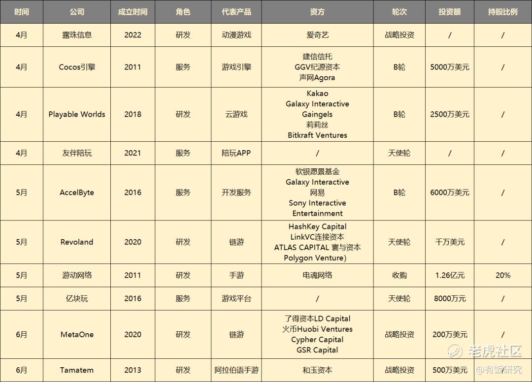 和Q1相似,海外企业拿走了大部分钱,去年最火的如二次元、多平台研发基本从名单上消失,链游、云游戏等新物种开始成为吸金主力。