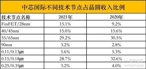 从工艺水平来说,中芯国际可以代表目前中国大陆晶圆制造的最高水平。根据中芯国际披露的年报信息,成熟制程仍是公司的主要技术工艺,但可以看到从2020年到2021年,相对先进的工艺节点收入比重正在增大,这也反映了中芯国际在向先进制程的转型。