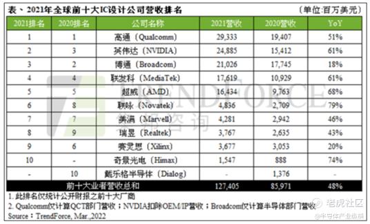 在集邦咨询发布的2021年全球前十大IC设计公司营收排名中,有四家中国台湾公司,包括联发科、联咏、瑞昱、奇景光电。除了联发科,三家中国台湾的IC设计公司收入均在2021年有上升,这与这些公司离台积电更近不无关系。当整个半导体供应链备受挑战的情况下,晶圆代工产能供需吃紧,台湾产业链整体区域优势,在设计公司的业绩上有了更好的体现。