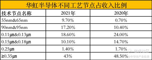 而中国排名第二的晶圆代工企业华虹国际在2021年晶圆代工的收入为110亿人民币,增长69.6%。而从华虹半导体披露的年报信息不难看出,在制程方面,华虹半导体距离中芯国际仍有相当一部分距离。