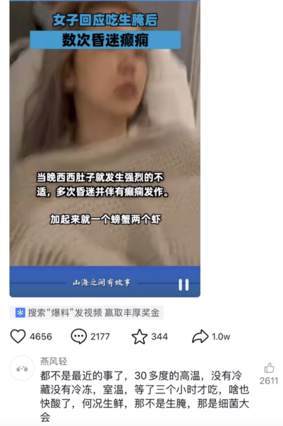 想象一下,在30℃的高温下,无冷藏冷冻的海鲜生腌,放上三个小时再吃,无异于细菌盛宴。