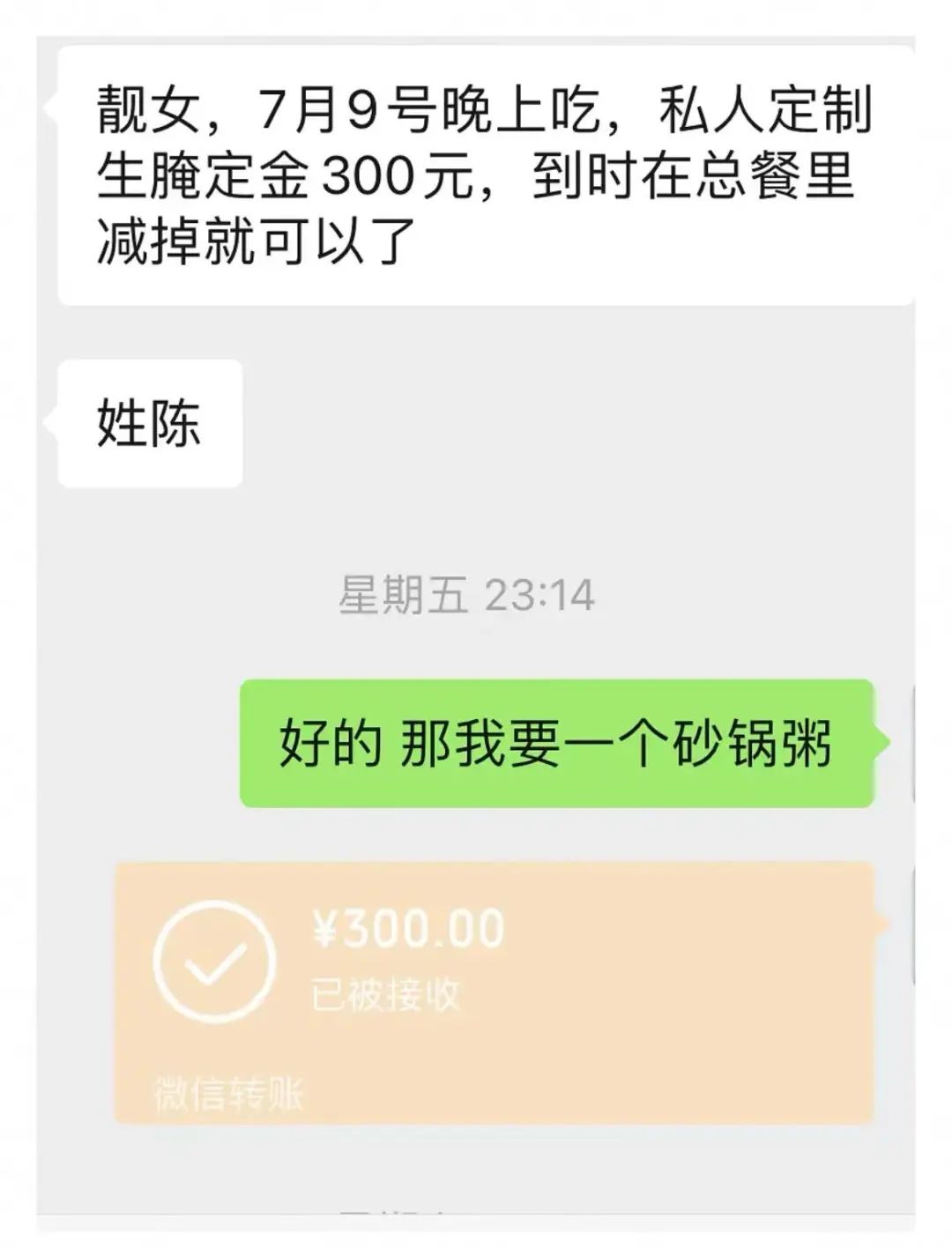 而且明明是大排档式的潮汕餐厅,预定却需要先交300块定金,一次能捞出一锅的生腌海鲜,老板却称为「私人定制」,整得跟吃高级日料似的。