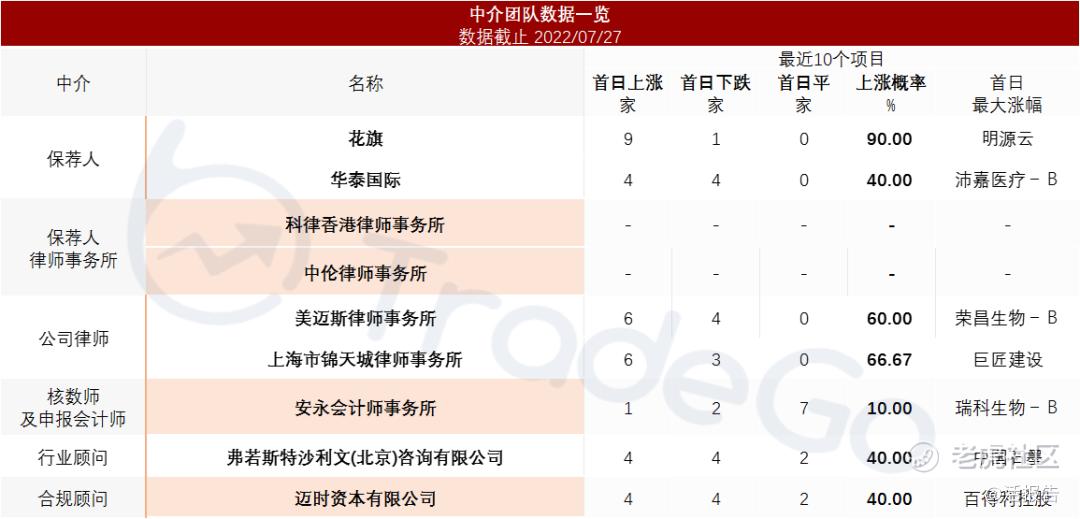 花旗近期的保荐破发率为41.82%,近期保荐的医疗企业有心通医疗、汇通达、远洋服务、复宏汉霖等。