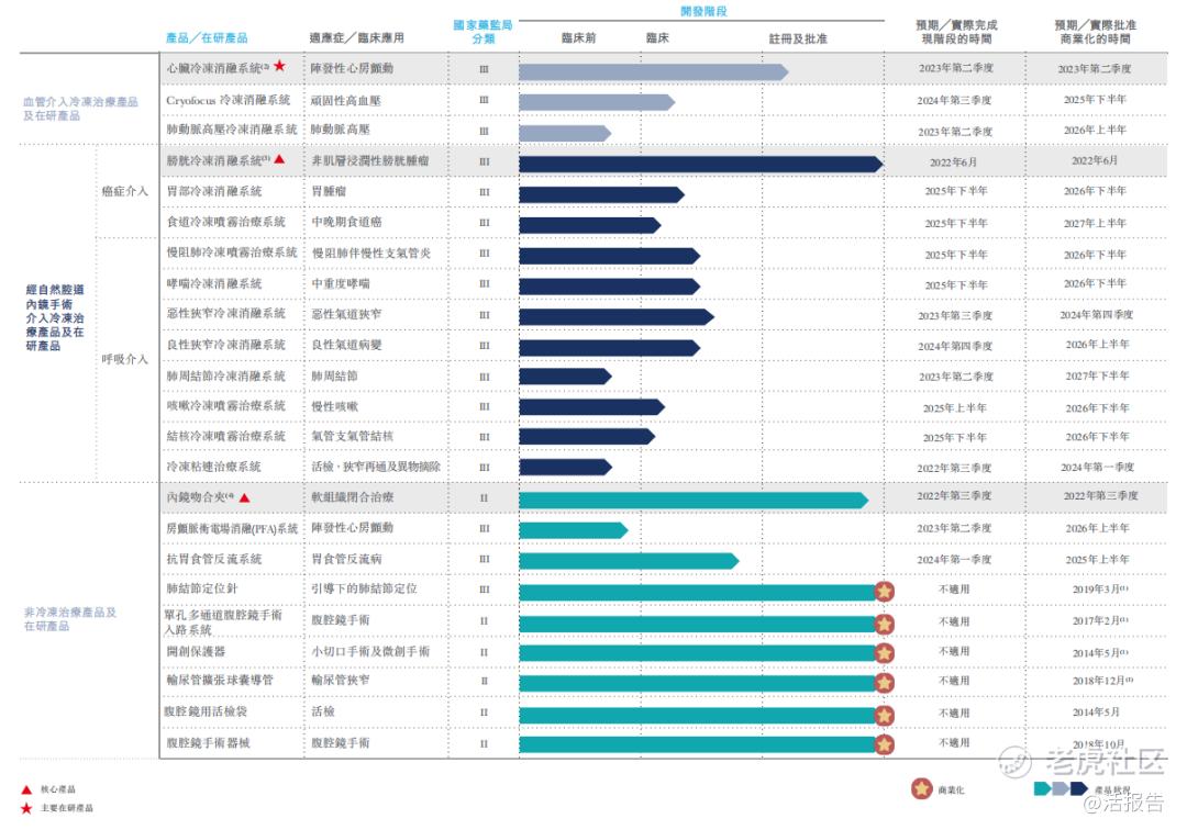公司的产品管线包括各种冷冻治疗系统和手术耗材,根据弗若斯特沙利文,其中四种获国家药监局或其省级对应机构认可为“创新医疗器械”,其中多款产品预计会成为国内或全球首创。