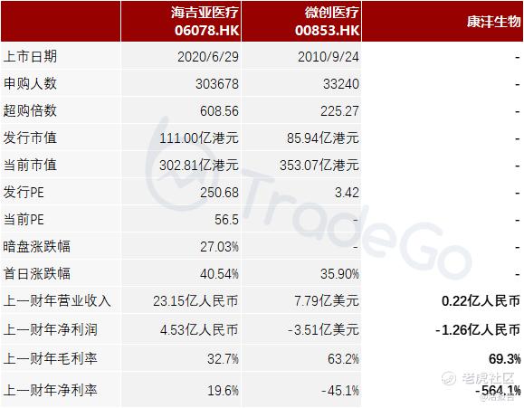 本次选取的同行业对比公司为:$海吉亚医疗(06078)$ 和$微创医疗(00853)$
