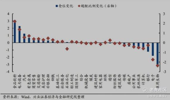 图:2022年Q2主动偏股型基金重仓股各行业的仓位变化与超配比例