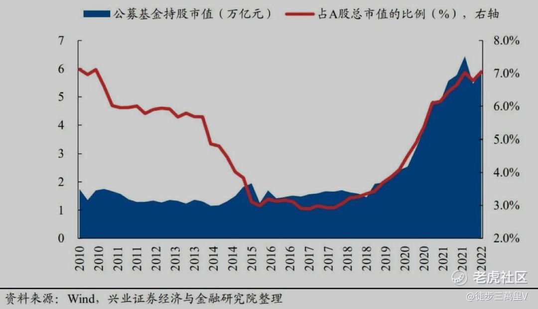 图:公募基金持股市值变化及占A股总市值比例的变化