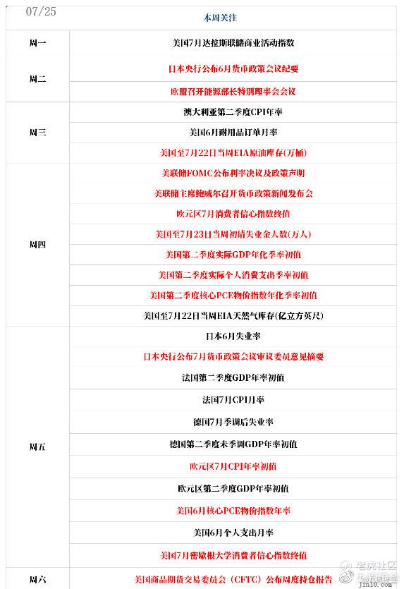 本周重点: