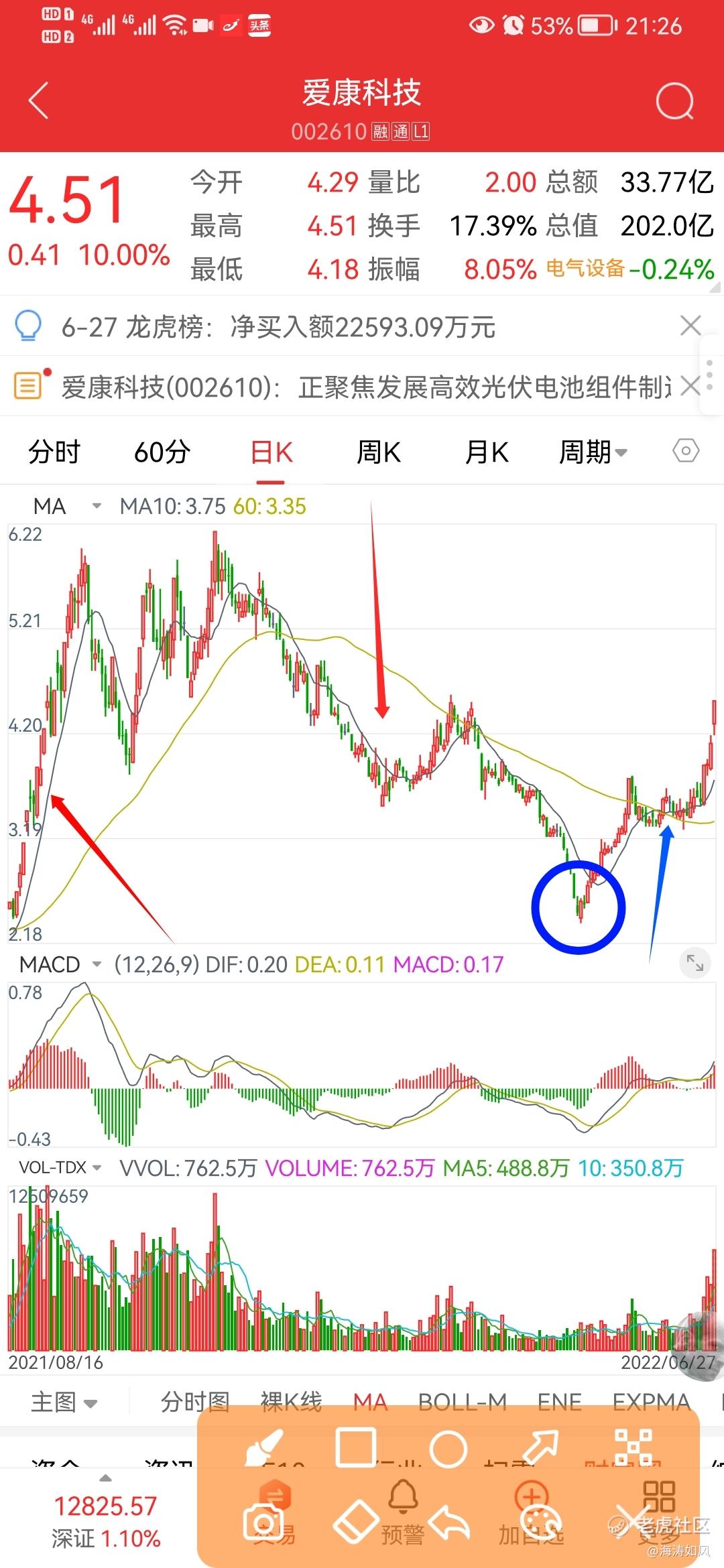 爱康科技,让人舒服的地方,就是蓝色调整这个区域,浅调快升!