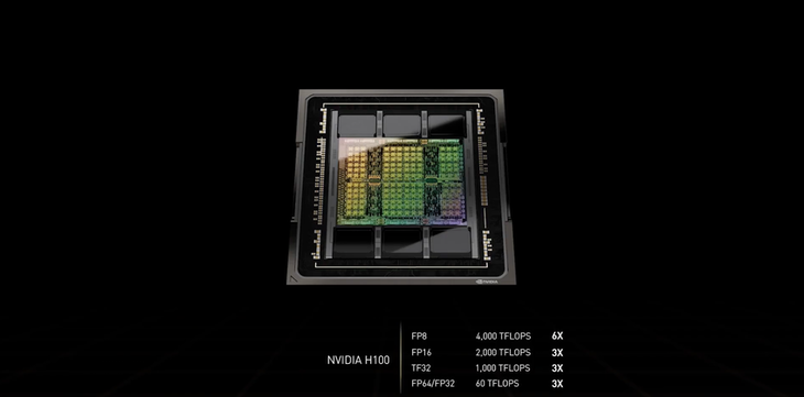 具体发布的新产品和技术,很多文章都已经详尽地介绍过了,一言以蔽之:牛!其中最炸裂的是H100 GPU,采用了台积电4纳米制程工艺,集成1800亿个晶体管,浮点计算能力相比前一代A100快了三倍,被看作英伟达的新一代“核弹”。