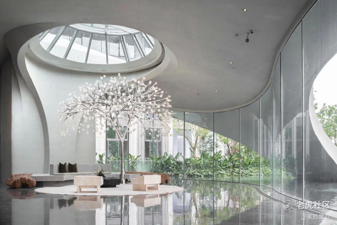 当然,我们从来不会忽略人们的社交表达需求,社区大堂采用清水砼一体浇筑薄壳结构,营造自然、轻盈的无界空间,恒温泳池、健身、私处、茶酒品鉴等社交娱乐空间定制精致交际场,阳光会客厅、水波阅读馆、多功能廊架、氧气花园等多小品设置,让自然、人居、社交在此和谐交融,表达更为轻盈时尚的美学张力及淡泊纯粹的建筑气韵。