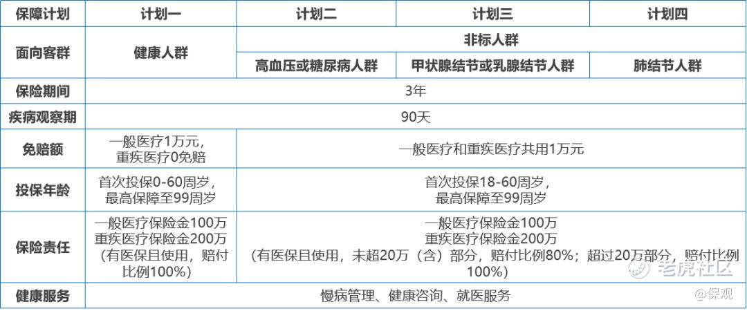 具体来看“家安芯”四大计划,其中计划一主要面向健康人群,计划二、三、四分别面向高血压或糖尿病人群、甲状腺结节或乳腺结节人群、肺结节人群。根据太保介绍,“家安芯”可覆盖超7亿[1]潜在非标体客户。这样的设计可以让投保人有量体裁衣之感,产品兼具“准度”和“温度”,推动了非标体百万医疗险市场的发展。