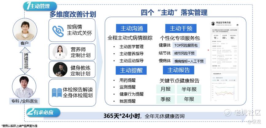 具体来看,太保主要通过客户健康电子档案来进行健康风险分层,并为其制定专属的健康管理计划,客户可以从中获得营养师、健身教练等针对性的管理计划。同时,医生会按客户健康情况进行主动式关怀,让服务能够看得见、摸得着。