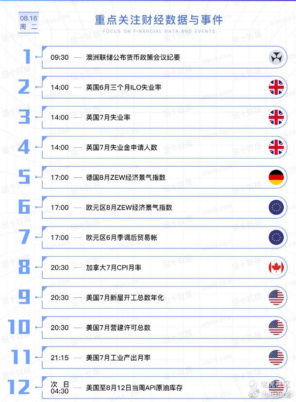 Hello,大家上午好,这里是九栀撩金,现在是8月16号,周二。