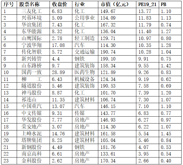 用这些标准选出的股票,基本上就是A股“打折”的大盘,基本不会有明星股。利用A股2022年7月30日的收盘数据,筛选出的公司如表1所示:
