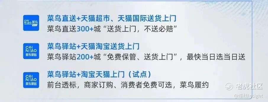 系列动作指向一个信号:菜鸟扩大了“送货上门”的服务类型和覆盖范围。