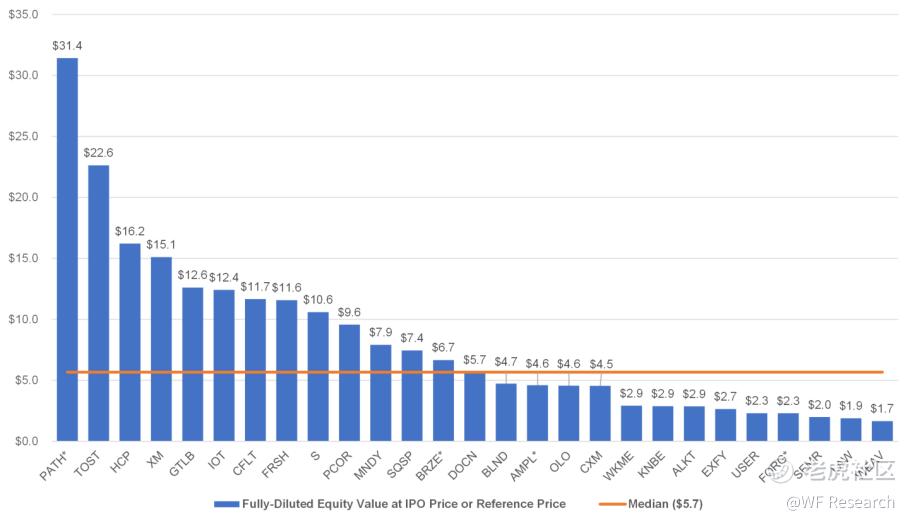 根据各公司 IPO 时的股价,这些公司市值的中位数为 60 亿美元。