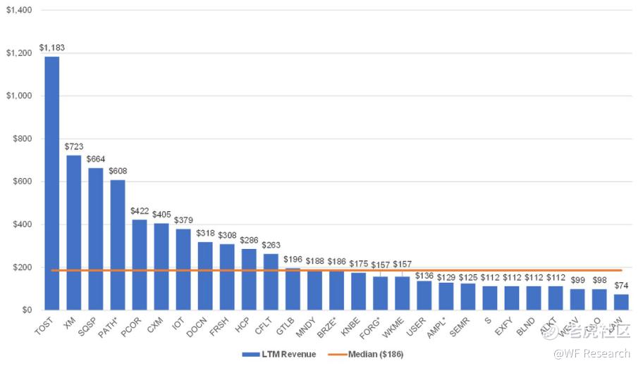 各公司的收入规模各不相同,LTM 收入的中位数为 1.86 亿美元。