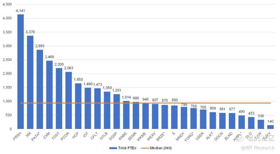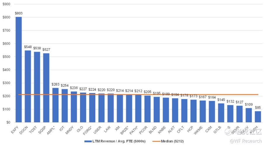 - 有将近 950 名全职员工,每位员工的隐含 ARR 为 22 万美元,每位全职员工的 LTM 收入为 21 万美元。