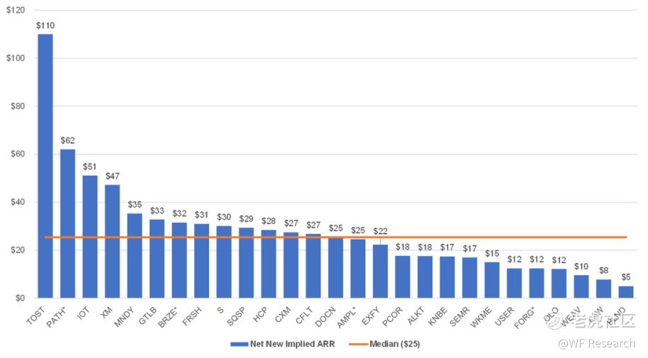 各公司在上市前最后一个季度的净新增隐含 ARR 中位数是 2500 万美元。