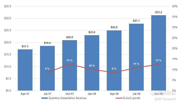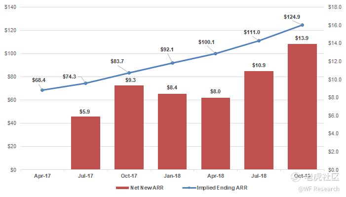 - 在截至 2018 年 10 月 31 日的 9 个月里,ARR 超过 10 万美元的客户中只有不到 5% 是新客户,这反映了该业务的扩张性质。