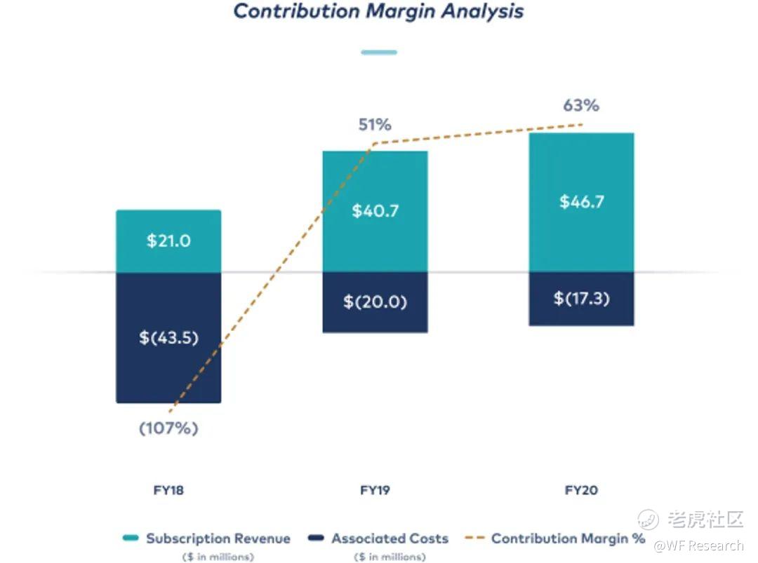 Confluent 公布了他们 2018 年的边际收益情况,他们认为这能够很好地体现整个业务的情况。在 S-1 的第 88 页,有一个关于边际收益的较长定义,下图显示,Confluent 的 ARR 会随着时间的推移越来越高。对于一家软件公司来说,这并不令人感到惊讶。