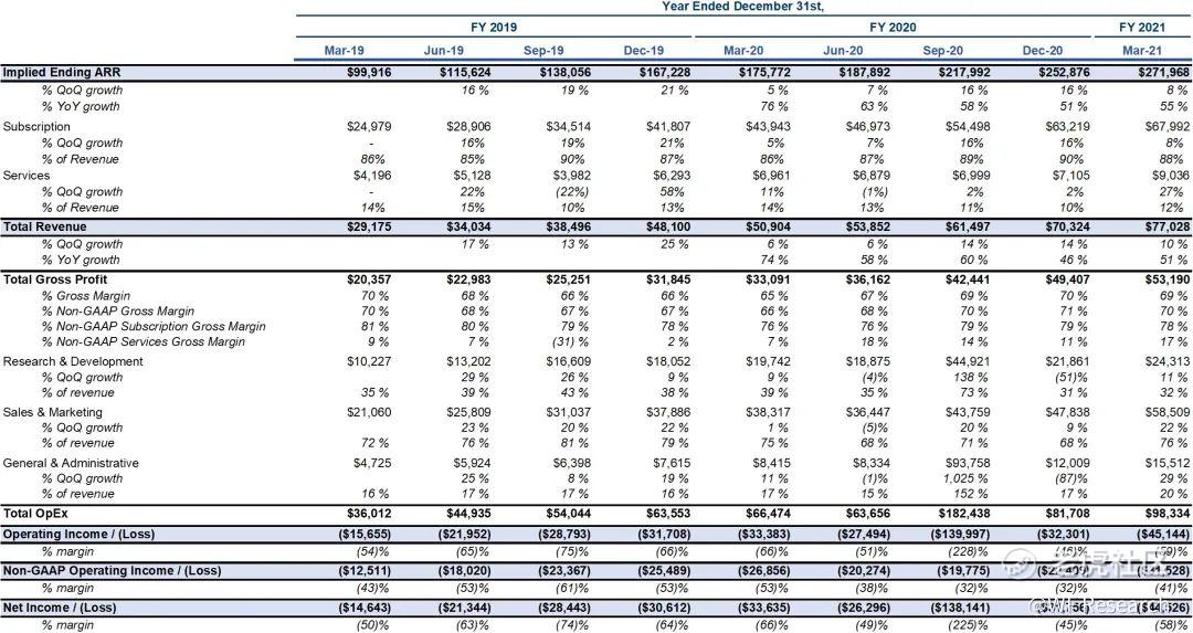 - 隐含 ARR 达 2.72 亿美元,同比增长 55%。LTM(过去 12 个月)收入为 2.627 亿美元,同比增长 53%。截至上一季度,88% 的收入来自订阅服务。