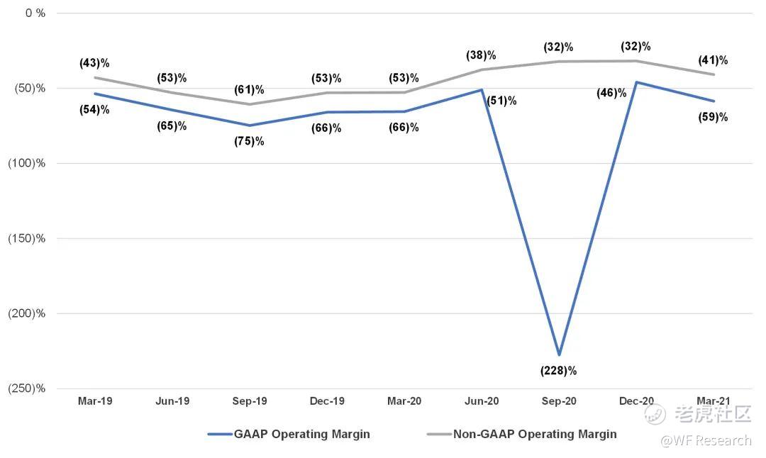 - 2021 年第一季度,云计算收入达 1390 万美元,同比增长 124%,占订阅收入的 20%。