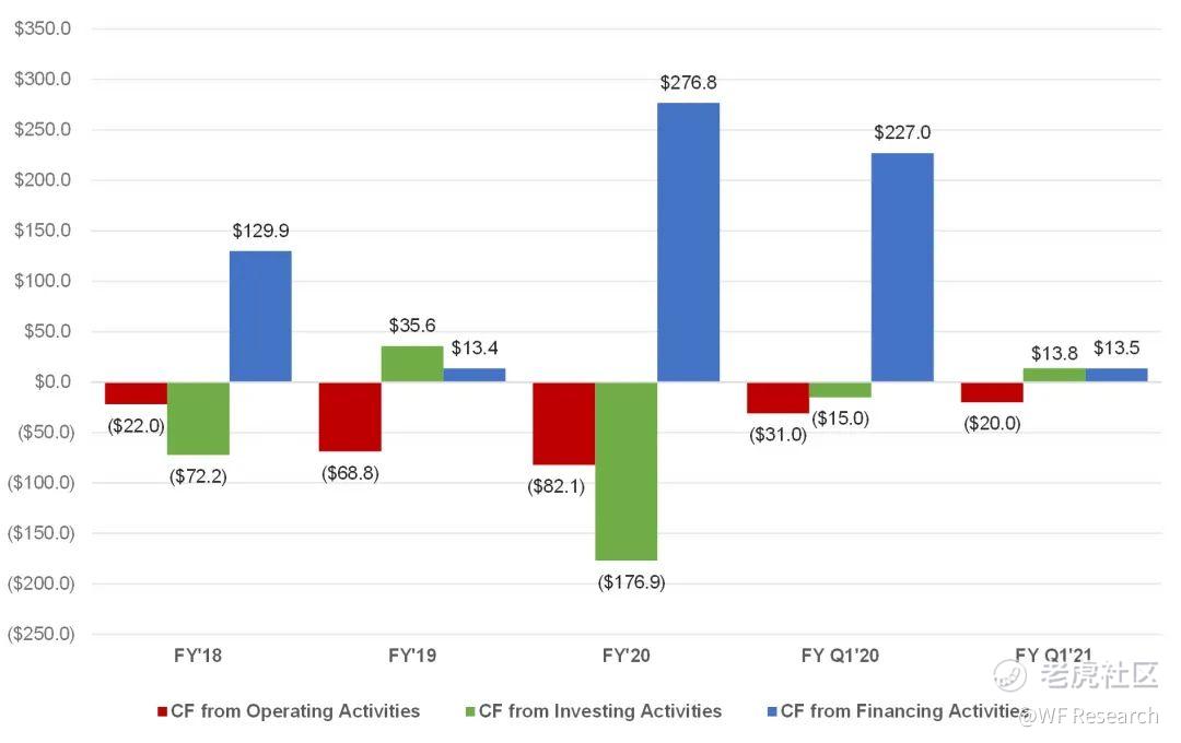 Confluent 并没有披露 ARR(年度经常性收入),但截至上个季度,该公司的隐含 ARR(implied ARR)为2.72亿美元(季度订阅收入*4),同比增长55%,收入留存率为 117%。该公司目前有 2500 多名客户,其中有 60 名客户的 ARR 超过 100 万美元,561 名客户的 ARR 超过 10 万美元。该公司也在为他们的增长投入大量资金,公司上个季度的自由现金流达 2120 万美元,这意味着公司的自由现金流利润率为 28%。Confluent 成立于 2014 年,原名 Infinitem,同年改名为 Confluent。根据 Pitchbook 的数据,Confluent 到目前为止已经在种子轮至 E 轮之间筹集了 4.559 亿美元的股权融资。最近的一轮是 2020 年 4 月由 Coatue领投的 E 轮融资,投后估值 45 亿美元(根据 Pitchbook)。按 33 美元/股的高价计算,完全摊薄后的市值将达到 107 亿美元,相较于 15 个月前 E 轮每股 14.97 美元的价格上涨了 120%。Confluent 总部位于加州山景城,截至 2021 年 3 月,在 20 个国家拥有 1473 名全职员工。