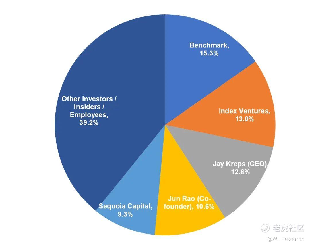 根据 Pitchbook 的数据显示,Confluent 已经筹集了 4.56 亿美元的股权融资。投资者包括 Benchmark、Index、Sequoia、Altimeter 和 Coatue 等。占比达 5% 以上的机构投资者包括 Benchmark(15.3%)、Index(13.0%) 和 Sequoia(9.3%)。首席执行官兼联合创始人 Jay Kreps 持有 12.6% 的股份。最近一轮的融资是 2020 年 4 月的 2.5 亿美元 E 轮融资,由 Coatue 领投,投后估值达 45 亿美元(来自 Pitchbokk 的数据)。2020 年 7 月,Confluent 提出要约收购,以每股 14.97 亿美元的价格出售了价值 1.1 亿美元的股票,Jay Kreps 和他的配偶在那次融资**出售 3950 万美元的老股。另一位联合创始人兼董事会成员 Neha Narkhede 在 2020 年 9 月出售了 7780 万美元的老股。