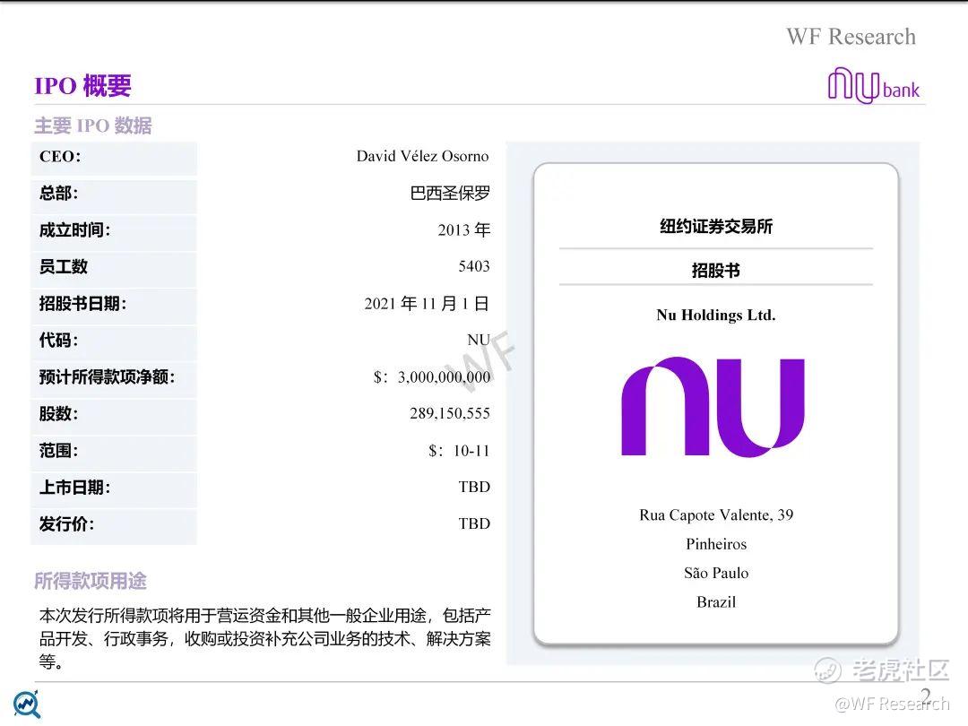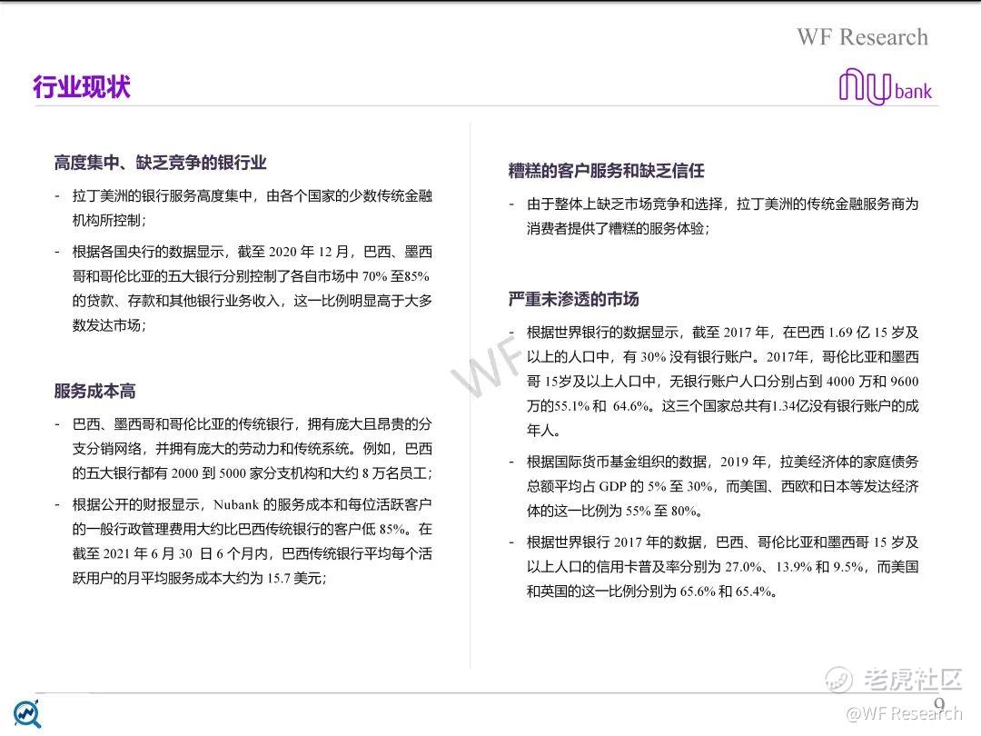 {"i18n":{"language":"zh_CN"},"detailType":1,"isChannel":false,"data":{"magic":2,"id":685283421,"tweetId":"685283421","gmtCreate":1659669018866,"gmtModify":1659669570952,"author":{"id":3577096191225211,"idStr":"3577096191225211","authorId":3577096191225211,"authorIdStr":"3577096191225211","name":"WF Research","avatar":"https://static.tigerbbs.com/1542940bf43840291d9ea6f4649e29c9","vip":1,"userType":1,"introduction":"","boolIsFan":false,"boolIsHead":false,"crmLevel":0,"crmLevelSwitch":0,"individualDisplayBadges":[],"fanSize":12,"starInvestorFlag":false},"themes":[],"images":[{"img":"https://static.tigerbbs.com/39ee9e6553ffa412fbc56492de3a3cbd","width":"632","height":"474"},{"img":"https://static.tigerbbs.com/5d09192e7058136a85528610f8c354f1","width":"632","height":"474"},{"img":"https://static.tigerbbs.com/135b2af419903fb878a0e75088f03cf0","width":"632","height":"474"},{"img":"https://static.tigerbbs.com/23570dbcd8bd83e3fbc707357affe211","width":"632","height":"474"},{"img":"https://static.tigerbbs.com/9b3b0638272569aa57586941fa417343","width":"632","height":"474"},{"img":"https://static.tigerbbs.com/ef0a8ae211347161593a90b724e06511","width":"632","height":"474"},{"img":"https://static.tigerbbs.com/e30f69bd71762c83801b3a626ada3c59","width":"632","height":"474"},{"img":"https://static.tigerbbs.com/b487f61f42f7f340e89e5e1850ef6064","width":"632","height":"474"},{"img":"https://static.tigerbbs.com/d91bdd994446ba208a45522ead957ef3","width":"632","height":"474"},{"img":"https://static.tigerbbs.com/16558c13279deee6d68efcb01a5ae4ce","width":"632","height":"474"},{"img":"https://static.tigerbbs.com/88df791e144a99ab1cbd90e5f17619d0","width":"632","height":"474"},{"img":"https://static.tigerbbs.com/bc8e8698ae771304aa49a39ba73e6d8c","width":"632","height":"474"},{"img":"https://static.tigerbbs.com/8e674de7e96eda46808aeddee827515e","width":"632","height":"474"},{"img":"https://static.tigerbbs.com/bed64b723f6d440197f1bfd72bc07e05","width":"632","height":"474"}],"coverImages":[{"img":"https://static.tigerbbs.com/39ee9e6553ffa412fbc56492de3a3cbd","width":"632","height":"474"},{"img":"https://static.tigerbbs.com/5d09192e7058136a85528610f8c354f1","width":"632","height":"474"},{"img":"https://static.tigerbbs.com/135b2af419903fb878a0e75088f03cf0","width":"632","height":"474"}],"title":"巴西数字银行 NuBank IPO 概要","extraTitle":"","html":"<html><head></head><body><p>Nubank是一个数字银行服务提供商,主要产品为万事达卡以及配套的手机APP,可为用户提供在线管卡、逾期提醒、消费记录查询、资金冻结等服务。</p><p class=\"t-img-caption\"><img referrerpolicy=\"no-referrer\" src=\"https://static.tigerbbs.com/88df791e144a99ab1cbd90e5f17619d0\" tg-width=\"632\" tg-height=\"474\"></p><p class=\"t-img-caption\"><img referrerpolicy=\"no-referrer\" src=\"https://static.tigerbbs.com/39ee9e6553ffa412fbc56492de3a3cbd\" tg-width=\"632\" tg-height=\"474\"></p><p class=\"t-img-caption\"><img referrerpolicy=\"no-referrer\" src=\"https://static.tigerbbs.com/9b3b0638272569aa57586941fa417343\" tg-width=\"632\" tg-height=\"474\"></p><p class=\"t-img-caption\"><img referrerpolicy=\"no-referrer\" src=\"https://static.tigerbbs.com/135b2af419903fb878a0e75088f03cf0\" tg-width=\"632\" tg-height=\"474\"></p><p class=\"t-img-caption\"><img referrerpolicy=\"no-referrer\" src=\"https://static.tigerbbs.com/e30f69bd71762c83801b3a626ada3c59\" tg-width=\"632\" tg-height=\"474\"></p><p class=\"t-img-caption\"><img referrerpolicy=\"no-referrer\" src=\"https://static.tigerbbs.com/5d09192e7058136a85528610f8c354f1\" tg-width=\"632\" tg-height=\"474\"></p><p class=\"t-img-caption\"><img referrerpolicy=\"no-referrer\" src=\"https://static.tigerbbs.com/ef0a8ae211347161593a90b724e06511\" tg-width=\"632\" tg-height=\"474\"></p><p class=\"t-img-caption\"><img referrerpolicy=\"no-referrer\" src=\"https://static.tigerbbs.com/bc8e8698ae771304aa49a39ba73e6d8c\" tg-width=\"632\" tg-height=\"474\"></p><p class=\"t-img-caption\"><img referrerpolicy=\"no-referrer\" src=\"https://static.tigerbbs.com/d91bdd994446ba208a45522ead957ef3\" tg-width=\"632\" tg-height=\"474\"></p><p class=\"t-img-caption\"><img referrerpolicy=\"no-referrer\" src=\"https://static.tigerbbs.com/b487f61f42f7f340e89e5e1850ef6064\" tg-width=\"632\" tg-height=\"474\"></p><p class=\"t-img-caption\"><img referrerpolicy=\"no-referrer\" src=\"https://static.tigerbbs.com/8e674de7e96eda46808aeddee827515e\" tg-width=\"632\" tg-height=\"474\"></p><p class=\"t-img-caption\"><img referrerpolicy=\"no-referrer\" src=\"https://static.tigerbbs.com/16558c13279deee6d68efcb01a5ae4ce\" tg-width=\"632\" tg-height=\"474\"></p><p class=\"t-img-caption\"><img referrerpolicy=\"no-referrer\" src=\"https://static.tigerbbs.com/bed64b723f6d440197f1bfd72bc07e05\" tg-width=\"632\" tg-height=\"474\"></p><p class=\"t-img-caption\"><img referrerpolicy=\"no-referrer\" src=\"https://static.tigerbbs.com/23570dbcd8bd83e3fbc707357affe211\" tg-width=\"632\" tg-height=\"474\"></p><p>我们是以第一性原理研究为基础的专业机构,欢迎关注和留言。</p><p></p></body></html>","htmlText":"<html><head></head><body><p>Nubank是一个数字银行服务提供商,主要产品为万事达卡以及配套的手机APP,可为用户提供在线管卡、逾期提醒、消费记录查询、资金冻结等服务。</p><p class=\"t-img-caption\"><img referrerpolicy=\"no-referrer\" src=\"https://static.tigerbbs.com/88df791e144a99ab1cbd90e5f17619d0\" tg-width=\"632\" tg-height=\"474\"></p><p class=\"t-img-caption\"><img referrerpolicy=\"no-referrer\" src=\"https://static.tigerbbs.com/39ee9e6553ffa412fbc56492de3a3cbd\" tg-width=\"632\" tg-height=\"474\"></p><p class=\"t-img-caption\"><img referrerpolicy=\"no-referrer\" src=\"https://static.tigerbbs.com/9b3b0638272569aa57586941fa417343\" tg-width=\"632\" tg-height=\"474\"></p><p class=\"t-img-caption\"><img referrerpolicy=\"no-referrer\" src=\"https://static.tigerbbs.com/135b2af419903fb878a0e75088f03cf0\" tg-width=\"632\" tg-height=\"