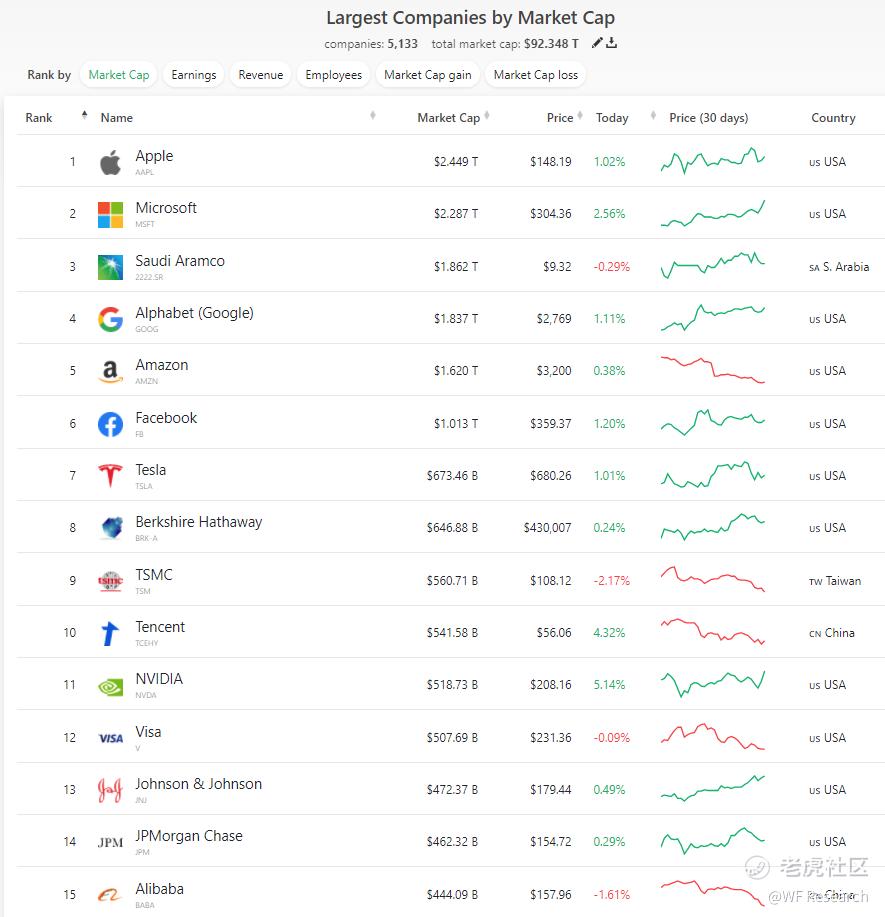 以下是一个参考,除去奇美拉公司,按市值计算,在前 100 强公司中,最小公司的企业价值也达 1220 亿美元。