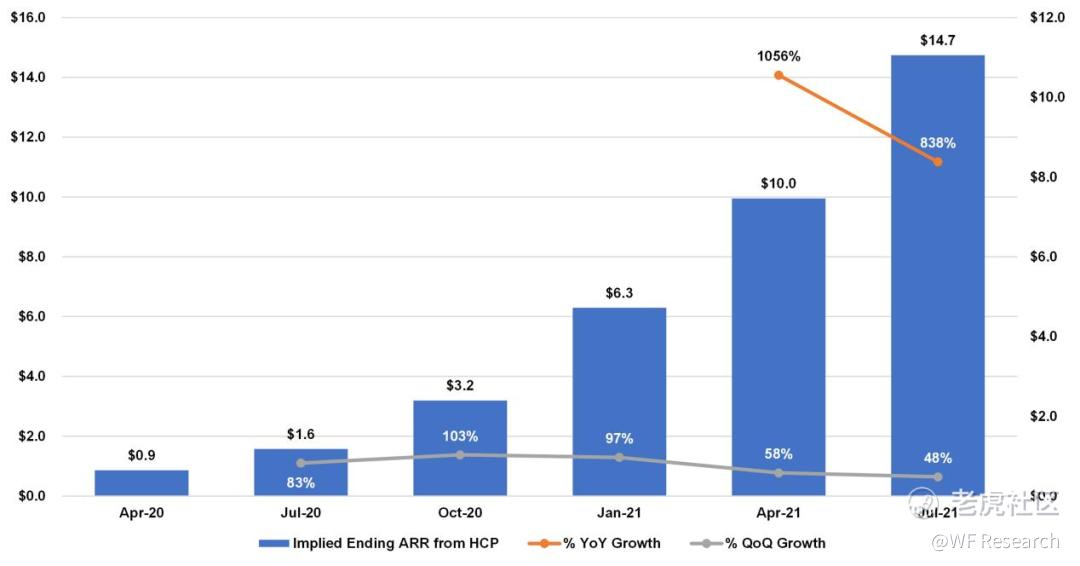 - HCP 是 HashiCorp 的自助式全管理型产品,其在上一季度的隐含 ARR 为 1470 万美元,同比增长 838%。