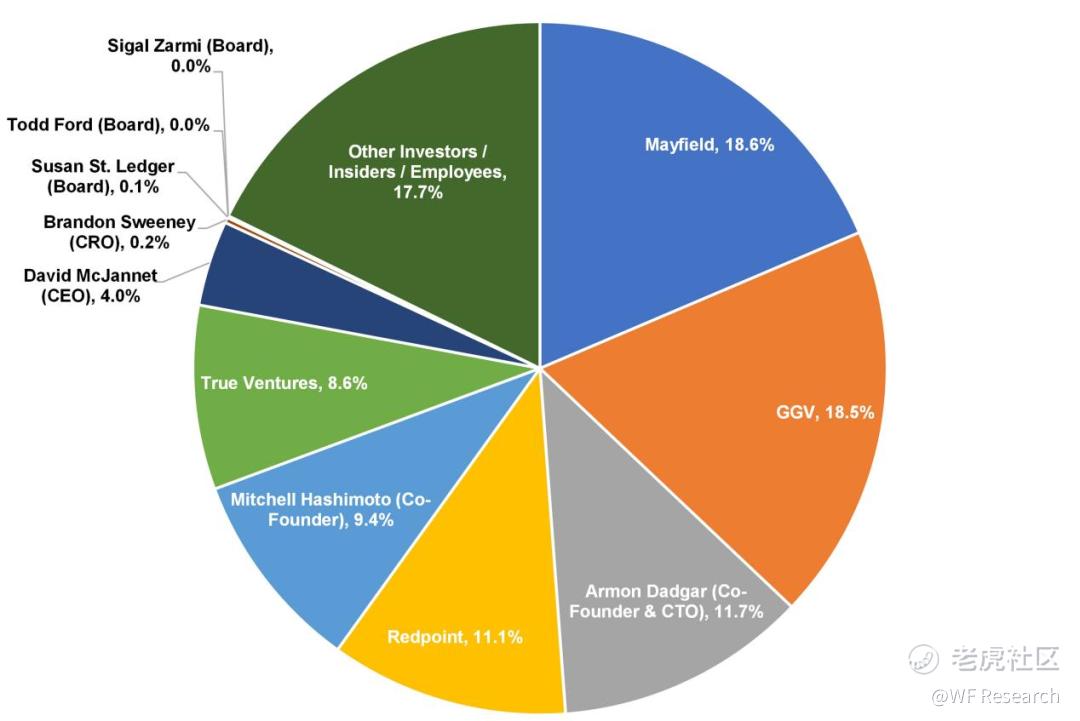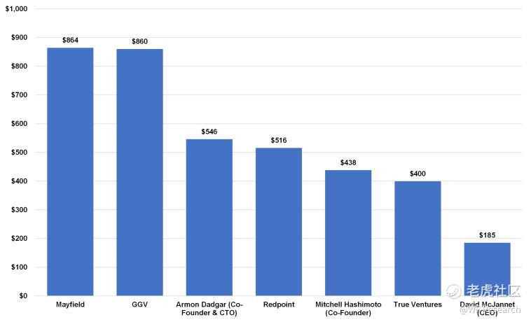 下图是按最后一轮每股 28.92 美元计算的当前股东价值。此次 IPO 的估值很可能会比这一价格高出数倍。Mayfield 和 GGV 所持有的股份可能在交易首日就价值数十亿美元。