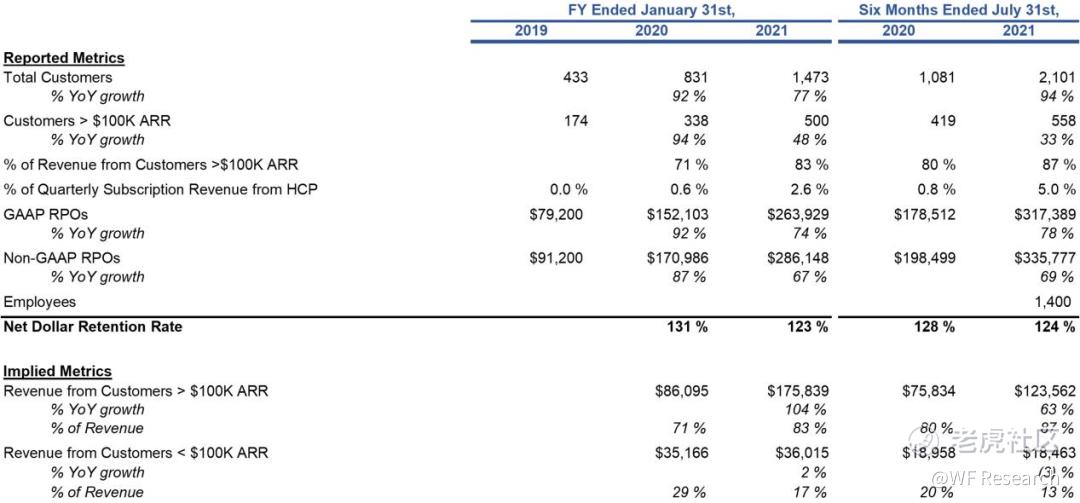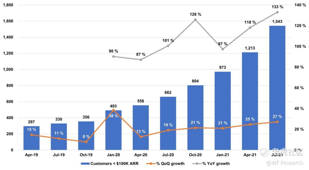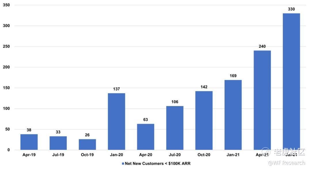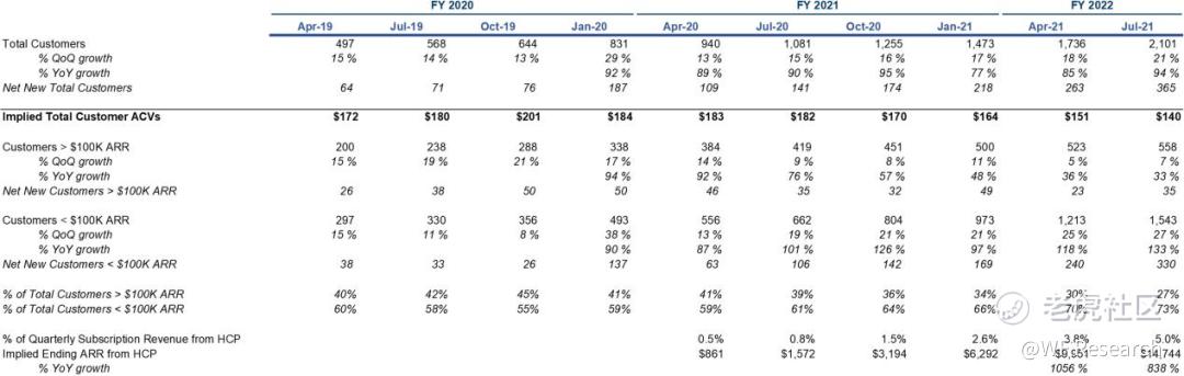 ARR 小于 10 万美元的新客户数同样增长迅速,这在一定程度上很有可能是受到 HCP 的影响。
